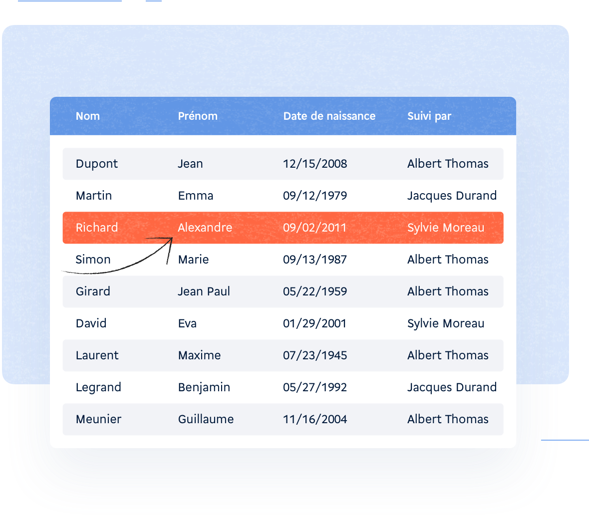 Accédez à l'intégralité de votre base patient, retrouvez leurs fiches individuelles et modifiez leurs informations de contact en toute facilité.